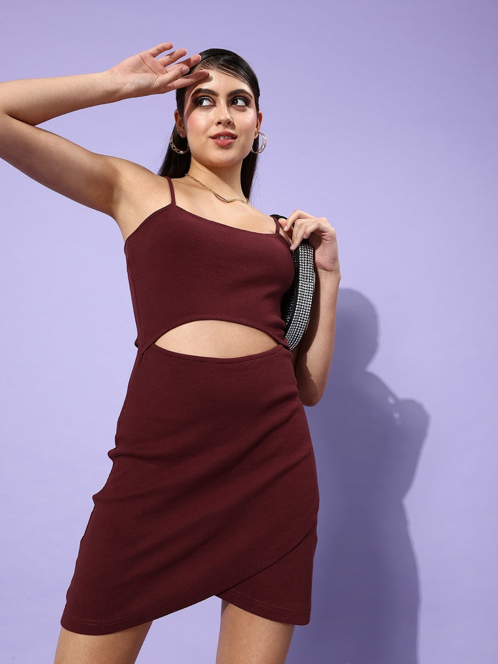 Unleash your bold, confident style with this ribbed bodycon mini dress designed for those who love to stand out. Crafted from textured ribbed fabric, it offers a flattering silhouette that hugs your curves perfectly, enhancing your natural shape. The strategic side cutout detail adds a hint of edge and sensuality, making this dress an ideal choice for parties, dates, or club nights. Delicate spaghetti straps provide a sleek, minimal touch while ensuring a comfortable fit throughout the day or evening. This versatile mini dress effortlessly transitions from casual glam to evening drama, making it a must-have wardrobe staple. Pair it with heels and a clutch for a complete head-turning look that exudes elegance and allure.
