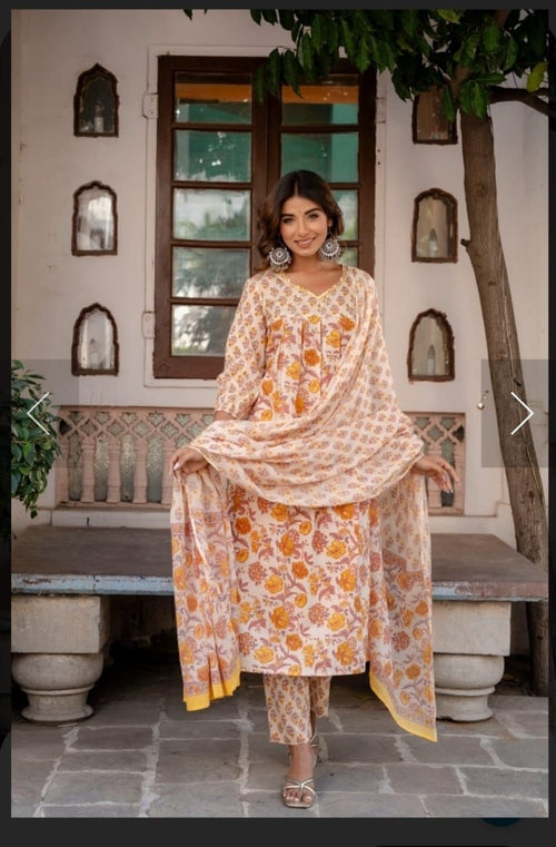 Wrap yourself in comfort and elegance with this Women Pure Cotton Kurta Salwar Dupatta Set, a versatile ensemble that blends traditional charm with modern simplicity.