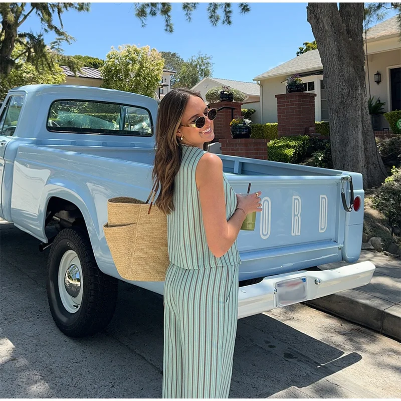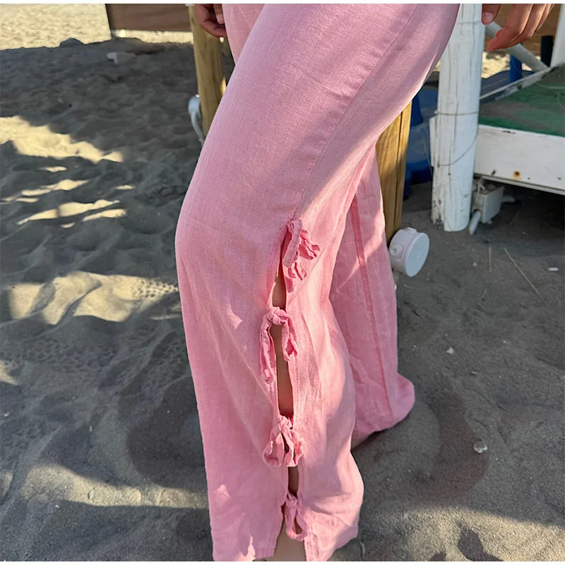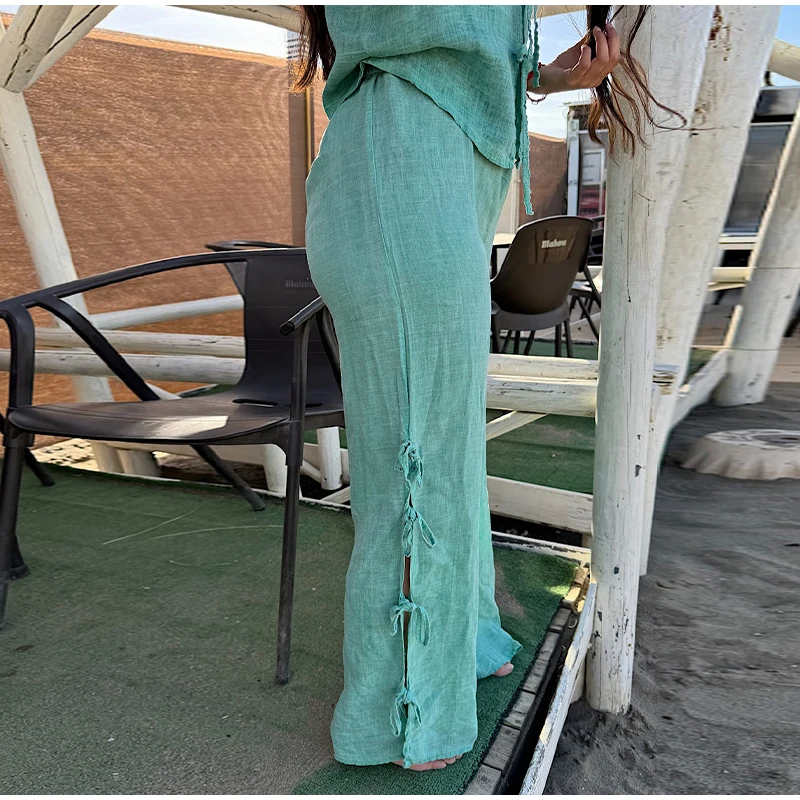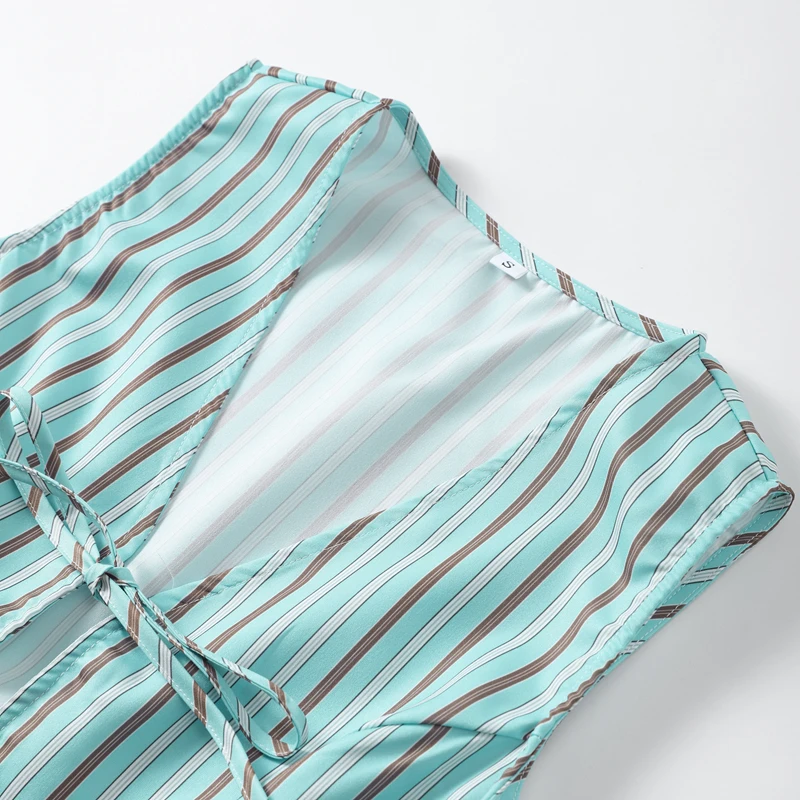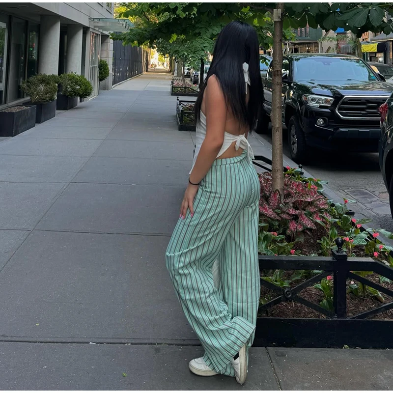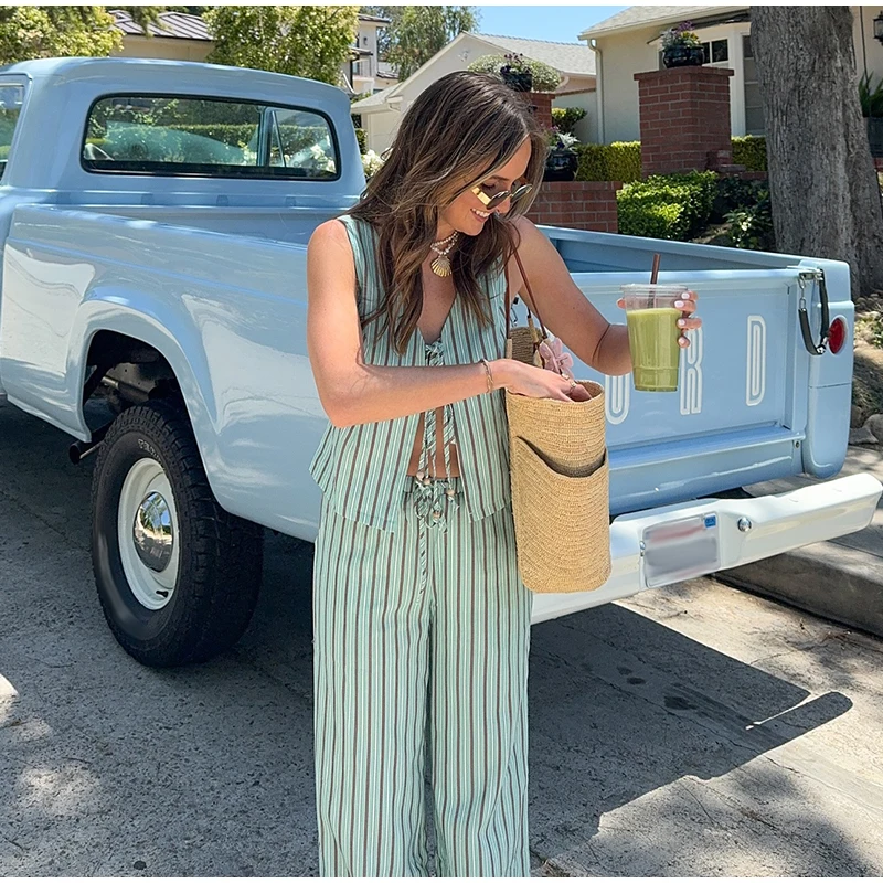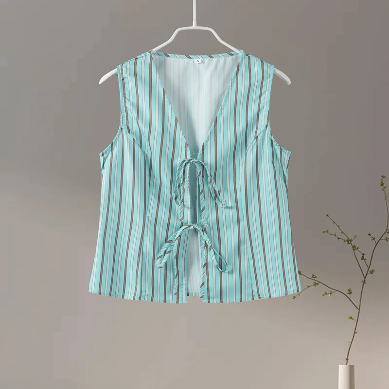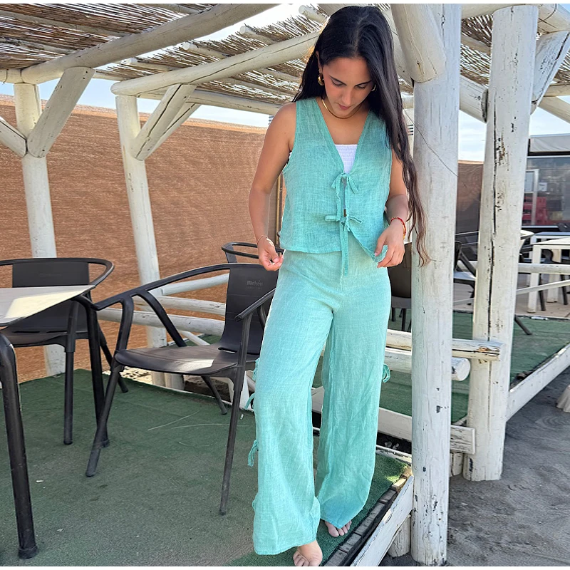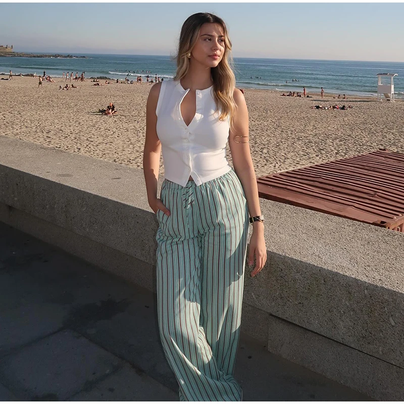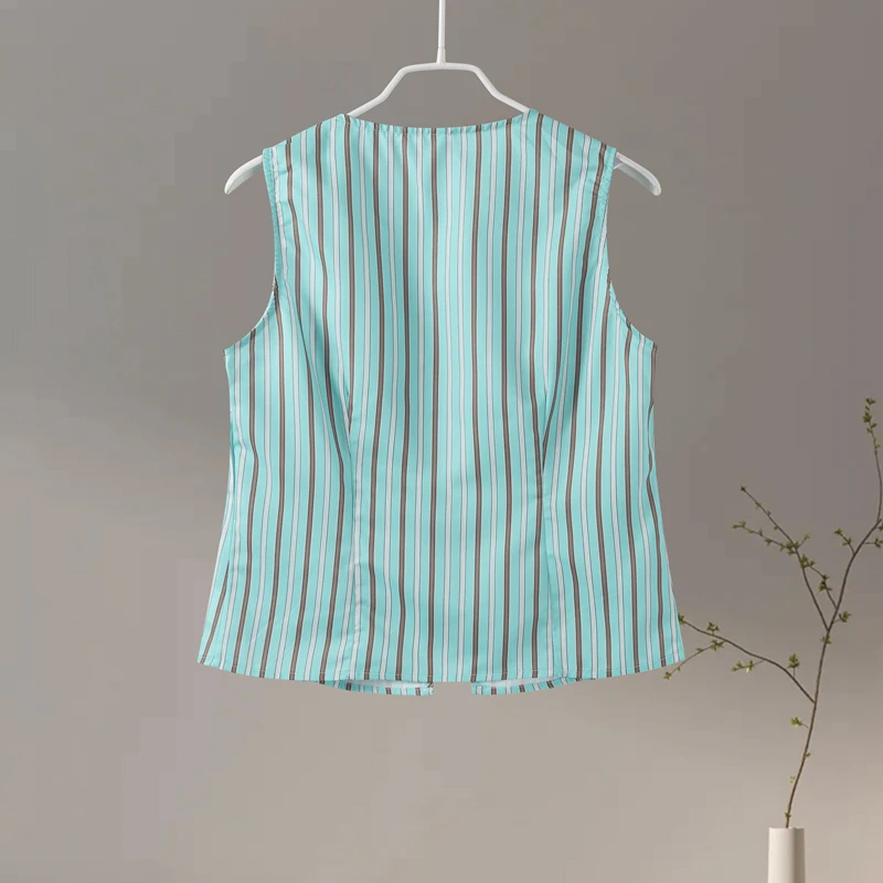 Numéro de modèle : Ensemble gilet et pantalon à rayures et lacets pour femme