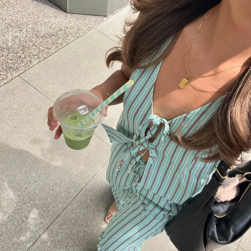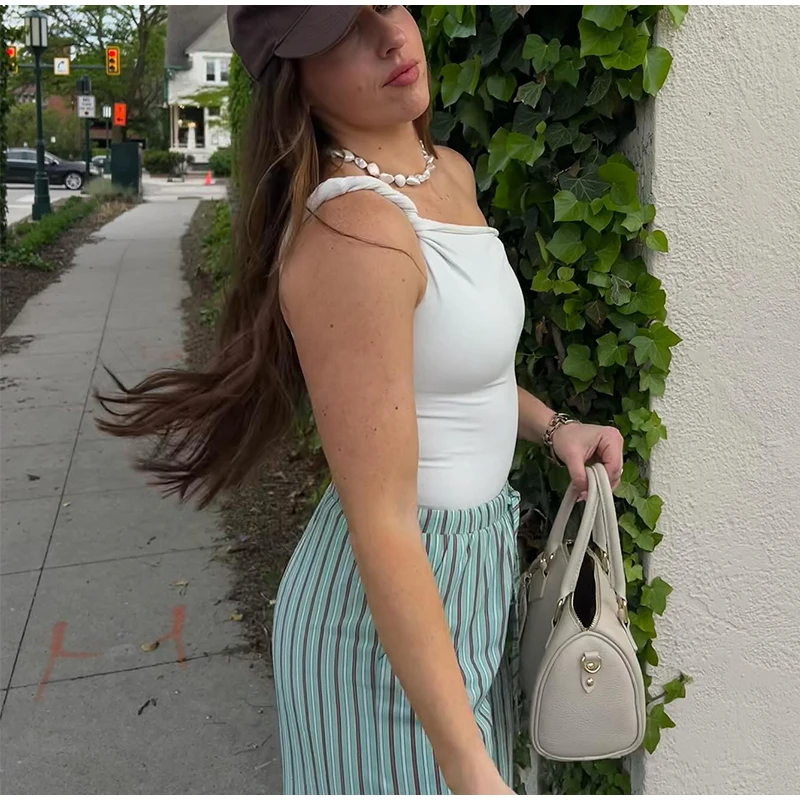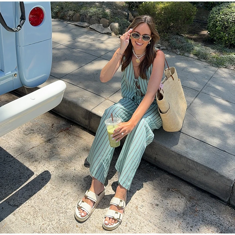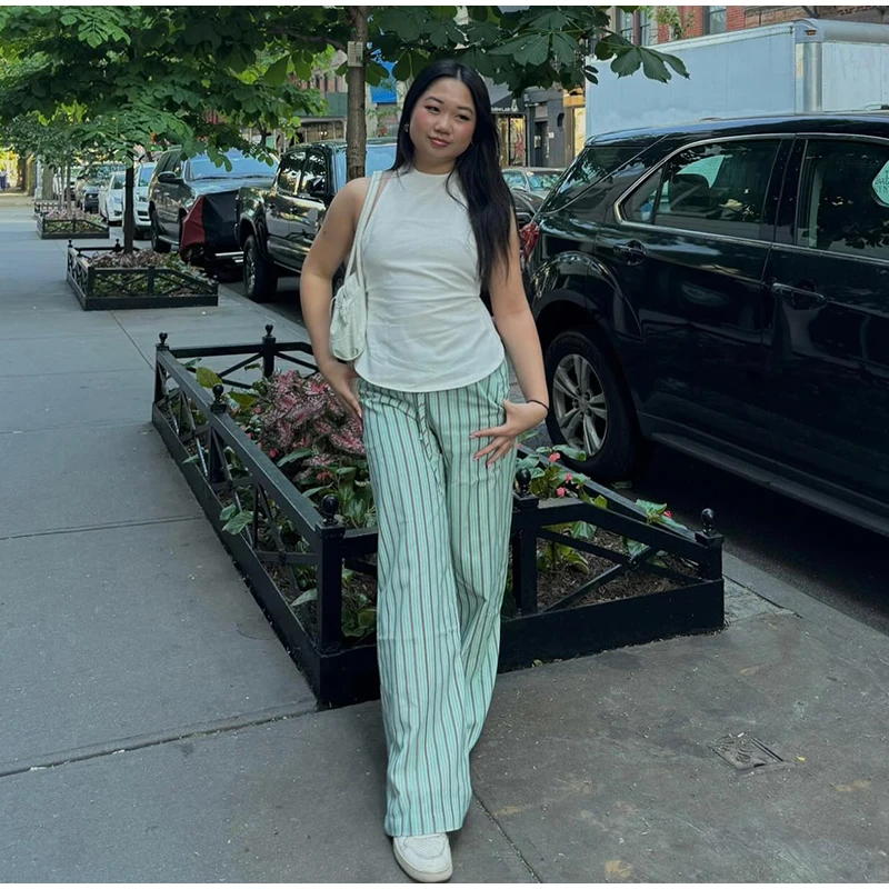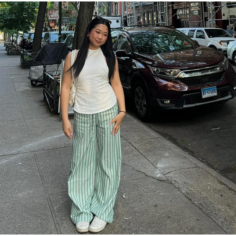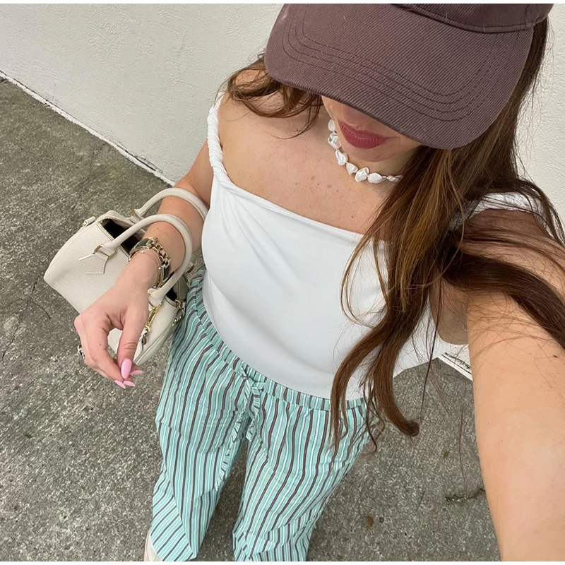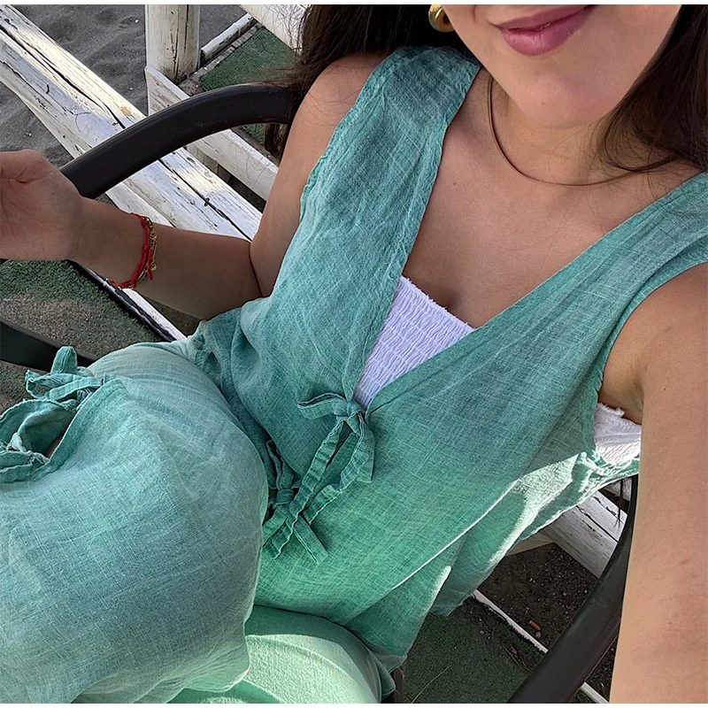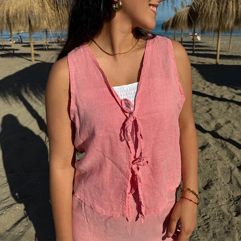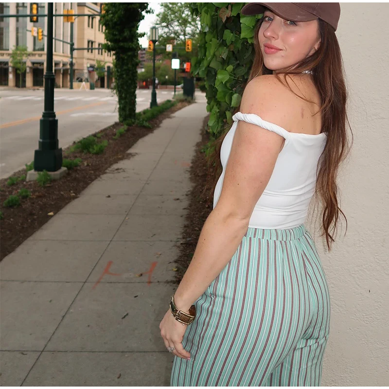 Numéro de modèle : Ensemble gilet et pantalon à rayures et lacets pour femme